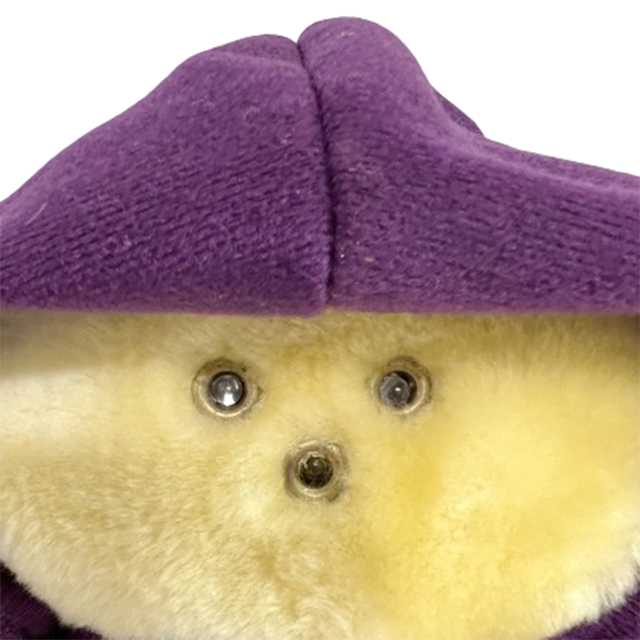 80'S アメリカン・トイの良心ことAnimal Fair社の大ヒット商品"Chubbles"のぬいぐるみになります。リンクの当時のCMを見てもらえばわかるように、ファービーよりも早かった、サウンドとフラッシュで応えてくれるコミュニケーション・プラッシュ・ドール!チャブルスのパープル・バージョンになります。過去にタグ付きパッチ付きも販売しましたが、いやいやトレンドは無地っしょ!?ということでシンプル・イズ・ベストなスタンダード・スタイルです。ジェダイを彷彿とさせるフード付きコートにイウォークのようなモコモコ毛むくじゃらボディ、ライトとして発光するつぶらな瞳と鼻にまんまると丸いフォルムで80'Sど真ん中&最&高となります!お尻の画像の可愛いこと!全体的な状態も良し。背中の電池コードは健在ですが動作未確認です。