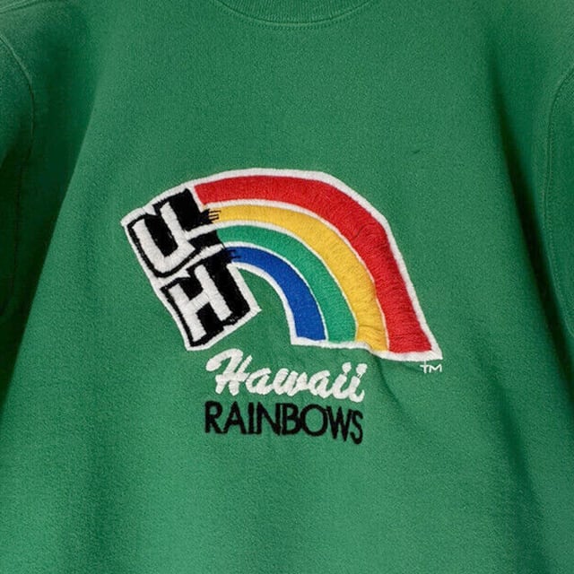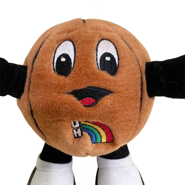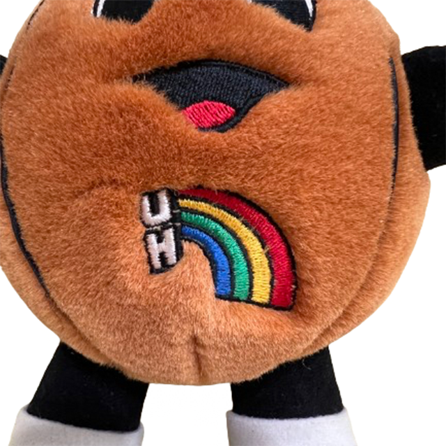 世界有数のリゾート・アイランド、ハワイ州の州立大学”University Of Hawaii"。こちらはレインボーステイトとも呼ばれる虹の島ハワイを象徴するレインボー・ロゴが胸元に刺繍されたオフィシャルグッズ、UHのバスケットボール・チームのマスコット・キャラクター、"Rockieの1999年製ビンテージ・プラッシュ・ドールになります。ボール・キャラは数多くあれどのナイス最高仕上がり。ボールや手足にはギュウギュウに綿が詰められており、足にはかなり頑丈なワイヤーが入っている重厚な作り。ポーズもしっかりそのまま。タグにはハワイ大学のエンブレム入り。ボールには少量のビーンバッグも混ぜられているので最高の触り心地。
