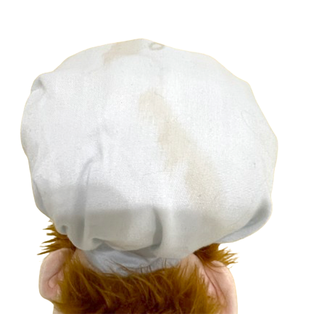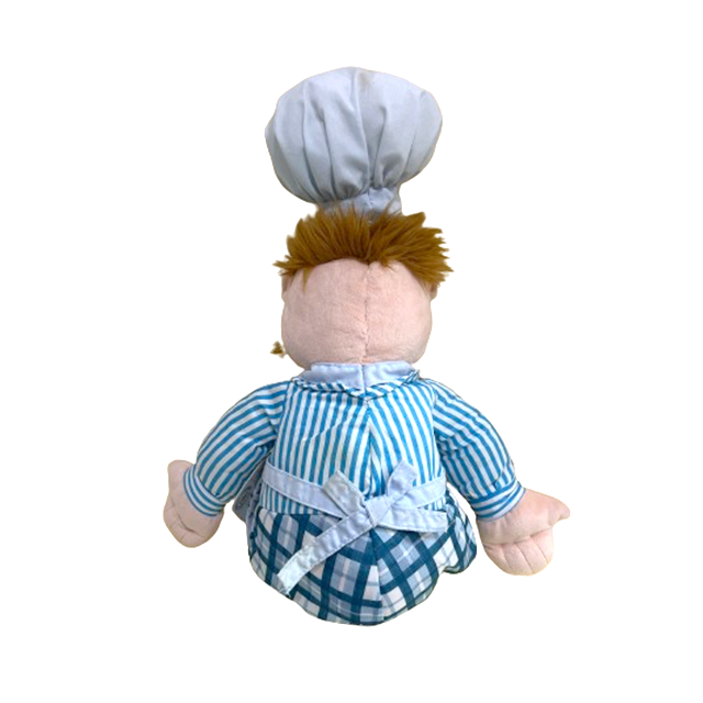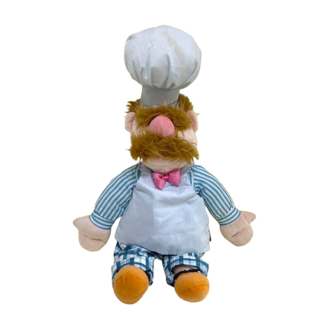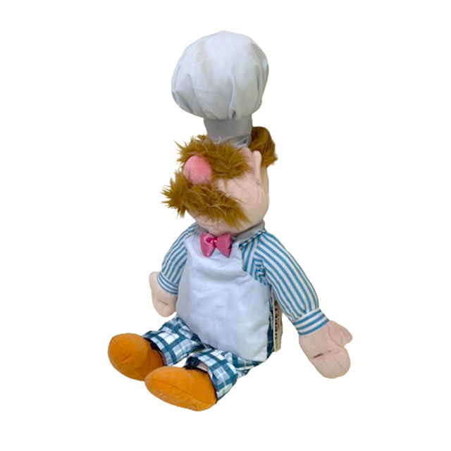 "SESAME PLACE"限定のプラッシュ・ドール・ラインの"MUPPETS"版と言える、ディズニー・ストア限定レア・シリーズから、超人気キャラ"Swedish Chef"の特大プラッシュ・ドールになります!マペッツと言えば彼!というコアなファンも多いんじゃ無いでしょうか?一度観たら忘れられない適当で陽気なキャラ。スウェーデン民謡的なテーマ曲を歌詞というかスキャットで適当に歌い最後にスプーンを投げ捨てるのが永遠に最高。喋るカボチャをバズーカで吹っ飛ばしたらパンプキン・パイになるエピソード最高過ぎ。キャシー塚本の原型とも言えるでしょう。目が隠れるほどの眉毛とモジャモジャの髭、ピンク色の花やスカイブルー・ストライプのコック服まで見事に再現した最高アイテムとなります。タグ付きのナイス・コンディション!足裏にディズニー・ストアのパッチ付き。コック帽に薄茶色の汚れあり(画像参照)。