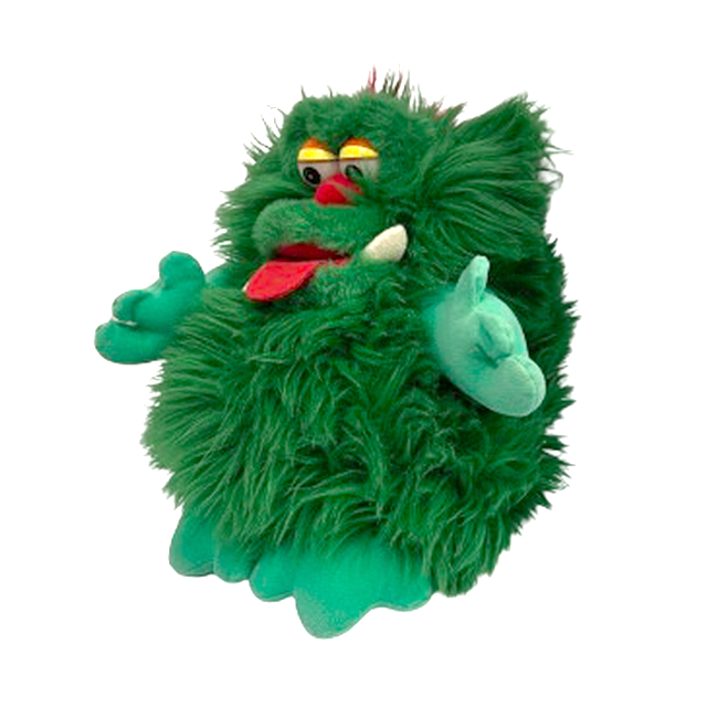 80's モンスター・プラッシュの金字塔「ファーブルス」。こちらはグリーン・カラーの"MOT"のハンド・パペットになります。アメリカ国内で50店舗をかまえるカーソンズというデパート・チェーンにて80年代に販売されていたビンテージ・アイテム。ジム・ヘンソンとマイペット・モンスターの中間というポップなバランスと清々しいカラーリング、15インチという特大サイズで背中から手を入れて遊べるところ、暗闇で光るプラスチック蓄光の目まで、抜け目なしのクラシック・アイテムです。