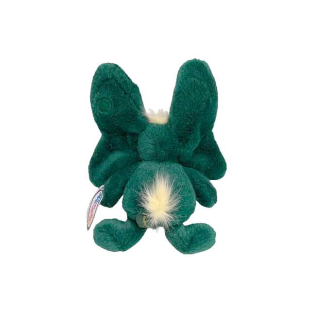 読み聞かせカセット・テープ付きで1994年に"Mary Meyer"より発売された、森の小妖精ウォンプキーのぬいぐるみになります。イウォーク族のように森に生息、世界中の生き物とコミュケーションができると言う設定でもう大満足。更にバタフライ・イヤーと呼ばれる大きな耳が特徴で、森=のグリーン・ボディに赤鼻というMUZZY&トナカイ的なホーリー・ムードまで完璧な90'Sマイナー・クラシック・アイテムです。蝶耳にはマジックテープが付いており実際に顔を包み込めます。胸元と頭の毛や困り気味の眉も最高。2000年代にCGで映画化されていますが、当店は断然オリジナル絵本派。MUZZY、イウォークに続く全毛キャラとなります。