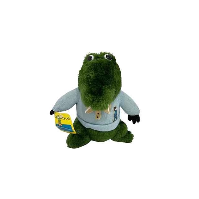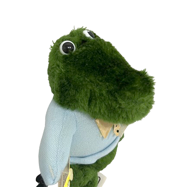 ワニのぬいぐるみは全て最高説に繋がる最高傑作ワニ・プラッシュ。1980年代というタイミング、ラコステ・マナーのフレンチ設定、プレッピーがテーマでVampire Weekend的ポロ・シャツを着用、老舗Commonwealth社製、プロモーション用のタグのカラーリングにモスグリーンのボディまで、全ての要素をこのキュートなワニに詰め込んだ至高の一品となります。プラスチック製の目の印象はチェブラーシカの友人ゲーナを彷彿とさせてこれまたキュート。二本出た牙、敢えてのパンツを履いていない点など、衝撃のCITY POP感で世界中のぬいぐるみ好きを血祭りにあげます。バリエーションとしてポロ・シャツのカラーリング違いやワンピースの女の子バージョンも存在するので頑張って仕入れます。
