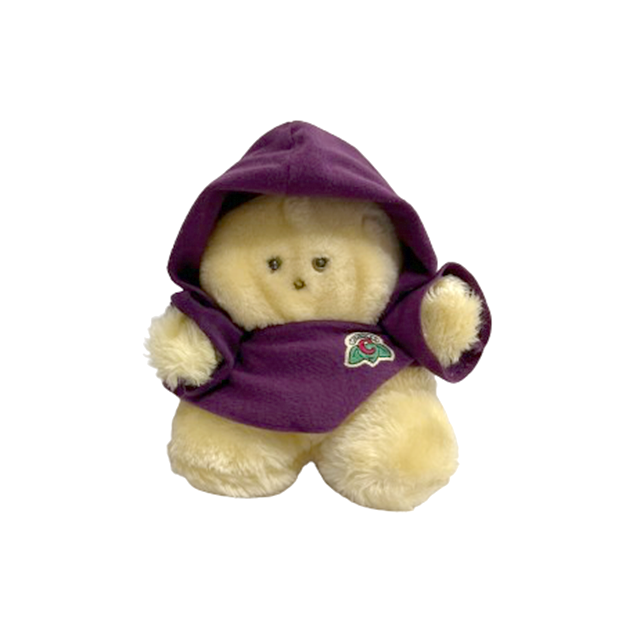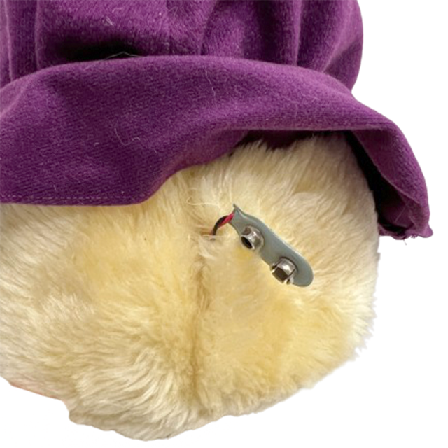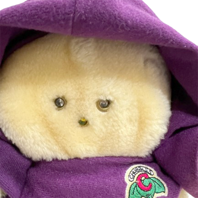 80'S アメリカン・トイの良心ことAnimal Fair社の大ヒット商品"Chubbles"のぬいぐるみになります。リンクの当時のCMを見てもらえばわかるように、ファービーよりも早かった、サウンドとフラッシュで応えてくれるコミュニケーション・プラッシュ・ドール!チャブルスのパッチ付きパープル・バージョンになります。ジェダイを彷彿とさせるフード付きコートにイウォークのようなモコモコ毛むくじゃらボディ、ライトとして発光するつぶらな瞳と鼻にまんまると丸いフォルムで80'Sど真ん中&最&高となります!お尻の画像の可愛いこと!背中の電池コードは健在ですが動作未確認です。