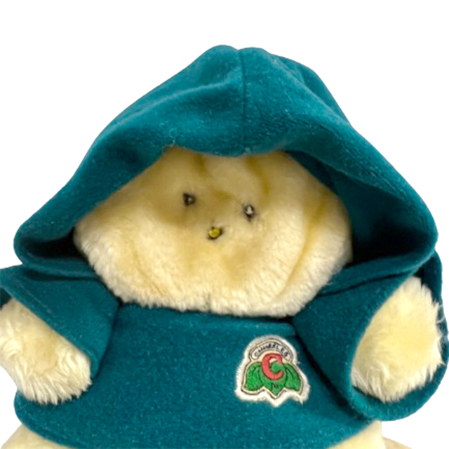 80'S アメリカン・トイの良心ことAnimal Fair社の大ヒット商品"Chubbles"のぬいぐるみになります。当時のCMを見てもらえばわかるように、ファービーよりも早かった、サウンドとフラッシュで応えてくれるコミュニケーション・プラッシュ・ドール。チャブルスのパッチ付きグリーン・バージョンになります。ジェダイを彷彿とさせるフード付きコートにイウォークのようなモコモコ毛むくじゃらボディ、ライトとして発光するつぶらな瞳と鼻にまんまると丸いフォルムで80'Sど真ん中&最&高となります!お尻の画像の可愛いこと!背中の電池コードは健在ですが動作未確認です。