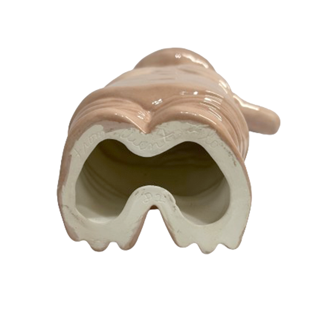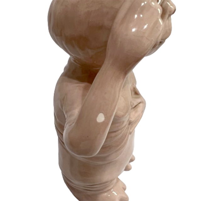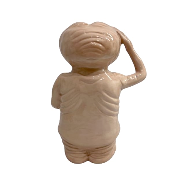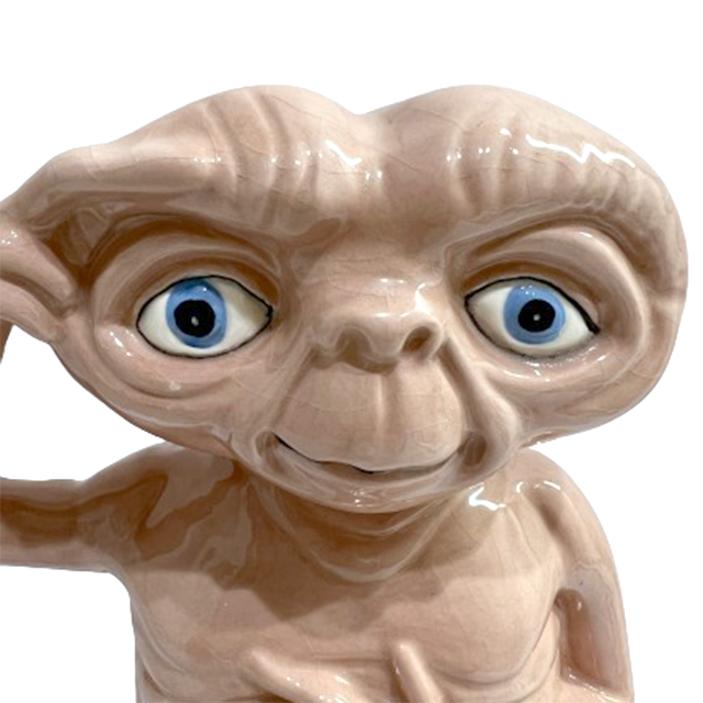 E.Tの陶器では最も手に入り易い80年代製セラミック・スタチューになります。大体いつでも買えます。DIYハンドメイドなのでカラーリングはじめ無数のパターンが存在しますが、よく無いのも多いので注意。こちらは人肌〜ピンク過ぎるボディに印象的な目のカラーリングを可愛く仕上げた秀作!マジックで塗ったような縁取りアイラインなど合わせてクリーミーな仕上がりがポップ・アート的で最高となります。指先も赤く無いところに拘りを感じますし、そうなってくるとポージングも新たな意味を生み出してきますね。