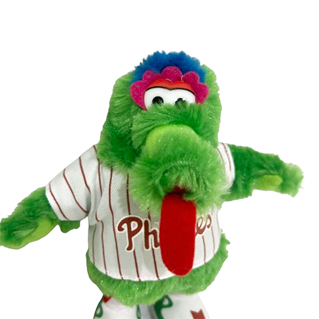 MLB "Philadelphia Phillies"の大人気マスコット「フィリー・ファナティック」のTwins Enterprise製 8インチ・サイズ・プラッシュ・ドール。78年にセサミ・ストリートと同じハリソン・エリクソン社がデザインを手掛けた完全ジム・ヘンソン親戚スタイルで既に最高となりますが、口がメガホンという点でヘンソン・キャラも超えてきました。ミラクルなバランスで保たれたカラーリングで動くポップアート化にも成功。ストライプのユニフォームはトドメと言えます。かなりしっかりとコットンも詰まっておりぬいぐるみとフィギュアの間くらいで最高となります。