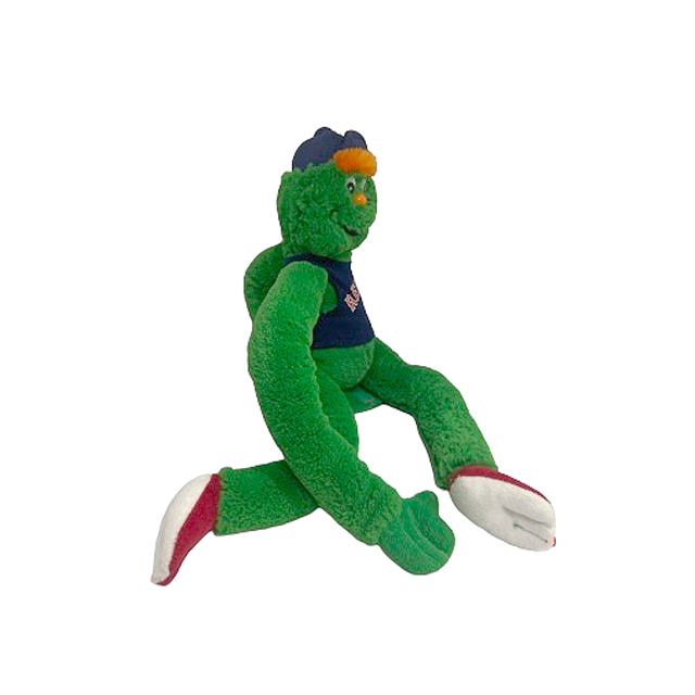 アメリカを象徴するMLBの巨大な市場から、フィリー・ファナティックに続く特大プッシュ・マスコット、ボストン・レッドソックスの「ウォーリー・ザ・グリーンモンスター」となります!90年代生まれというジャストなデザイン・ムードと、カートゥーン・ライクなサンプリング・センスがグリーン・カラーをベースに爆発しております。こちらは前回入荷タイプと同企画ながら、ロゴ入りBBキャップからチャームポイントのオレンジ・ヘアーが除くニューバージョン。ポリエステル・ファイバーの手触り最高の毛むくじゃらボディとプラスチック製の目と鼻。レッド・シューズがどう転んでもキュートなモンキー・ディフォルメ。両手両足にマジックテープが付いており体に付けたり壁掛けにも最適のClinger Toyとなります。