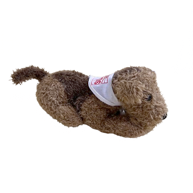 アメリカ最大規模の貨物運送会社"United Parcel Service, Inc"ことups。弊社もUS配送でめちゃお世話になっておりますが、こちらはUPSロゴのバンダナを巻いたウェルシュ・テリア・タイプのノヴェルティ・プラッシュ・ドールになります。普段なら他店様にお任せしそうなラインですが、あまりに可愛くてUPSのノヴェルティということで仕入れてしまいました。プラスチック製の目とポリエステルファイバーでコーティングされた鼻、ツートーンのカフェオレ・カラーも美しく、白いバンダナに赤字のロゴが永遠を約束してくれる犬is正義の方程式。ずっしりとビーンバッグも詰まってさすがのクオリティ。文句なしおすすめです。