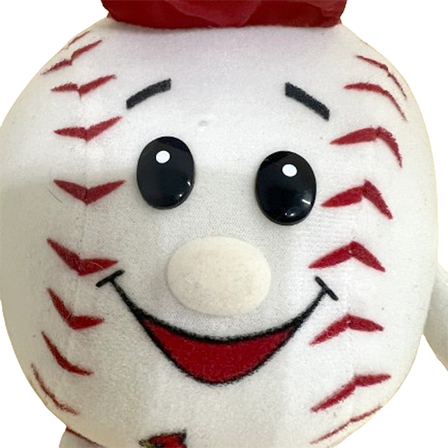 こちらも"Good Stuff"社製のMLBオフィシャル・グッズ。メジャーリーグ・トイとして大人気の擬人化ベースボールくん、セントルイス・カージナルス・バージョンになります。ロゴ入りのBBキャップを被ればスチャダラ・イズムで全て最高。スイカの種みたいな粒らな目で最高更新となりますが、胸下にはチーム・マスコットのフレッドバードが背中には英字ロゴのプリントが入り、フェイクレザー製のスパイクにバット、グローブまで装着させる凝りよう!投手の命とも言えるレッド・シームがほっぺみたいで更に最高となります。これなら投げても大安全。こちらは大きいサイズの9インチになります。タグ付き。